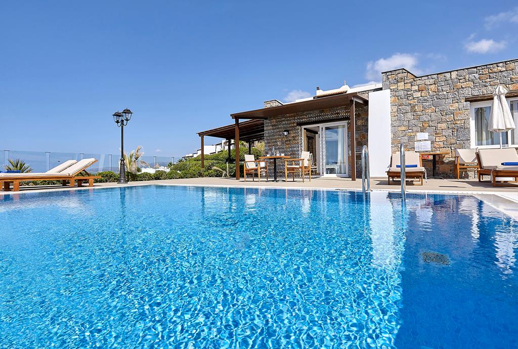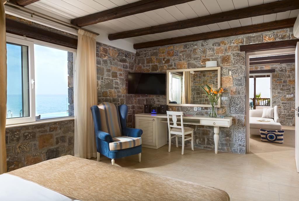 The luxury Villa Aphrodite is the ultimate private getaway for perfect summer holidays. Enjoy 75 sqm of indoor area and your extra-large private sweetwater infinity pool of 27 sqm. This beautiful replica of a typical Cretan stone house will exceed your expectations, with two full-size double/twin bedrooms , two bathrooms, a spacious living room and a large open furnished veranda, overlooking the sandy beach.